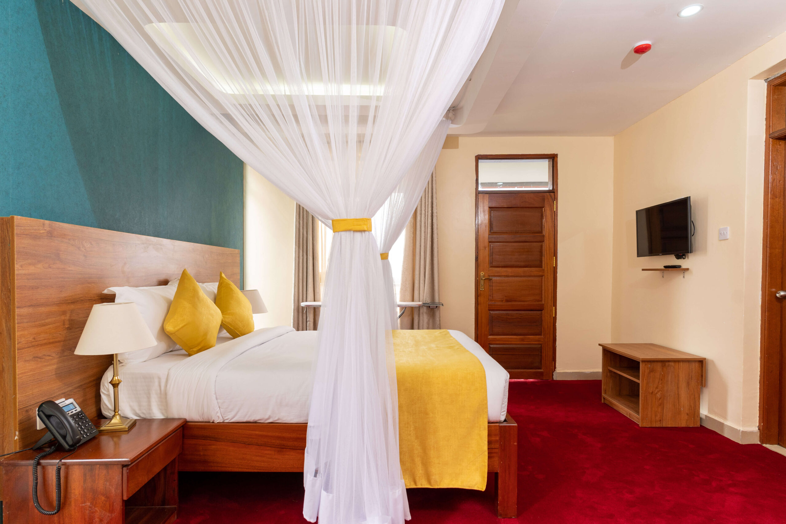Designed for the discerning traveler, our Executive Rooms offer a step up in luxury and finish. Distinguished by their plush wall-to-wall carpeting and commanding views of the swimming pool and Lake Naivasha, these rooms provide a quiet, upscale atmosphere. Center stage is the massive King-Size bed, promising a restful night's sleep. The modern en-suite bathroom features a glass shower cubicle and luxury amenities. Ideally suited for couples or business executives seeking a premium hotel experience in Naivasha.